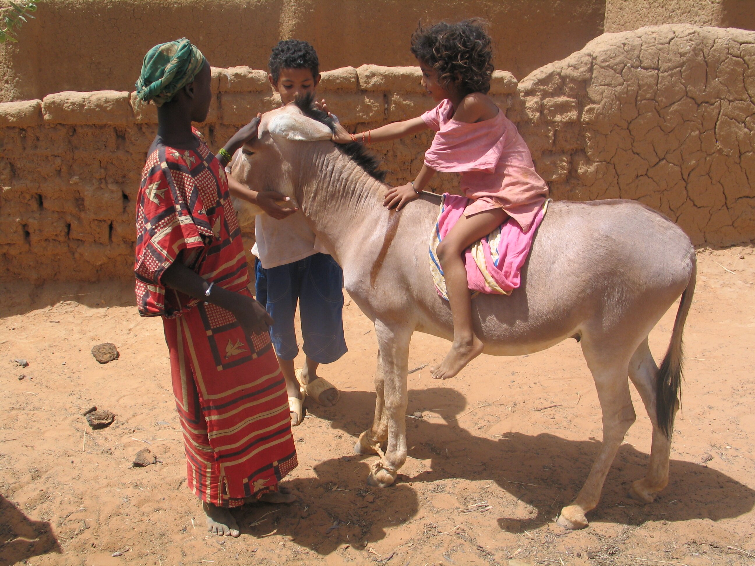 Back in Menaka, I was so lucky to have the hospitality of Moussa's family; and as ever, I loved watching the children and young daughters and relatives of the house, working so hard and cheerfully. The kids are forever playing, on the donkey, in the yard, never bored, always finding something to do or a way